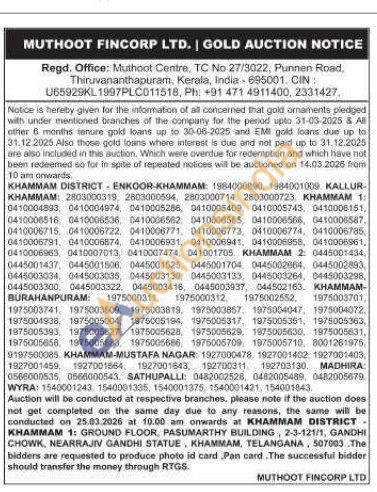 Muthoot Fincorp Ltd Gold Auctions Auction in Khammam