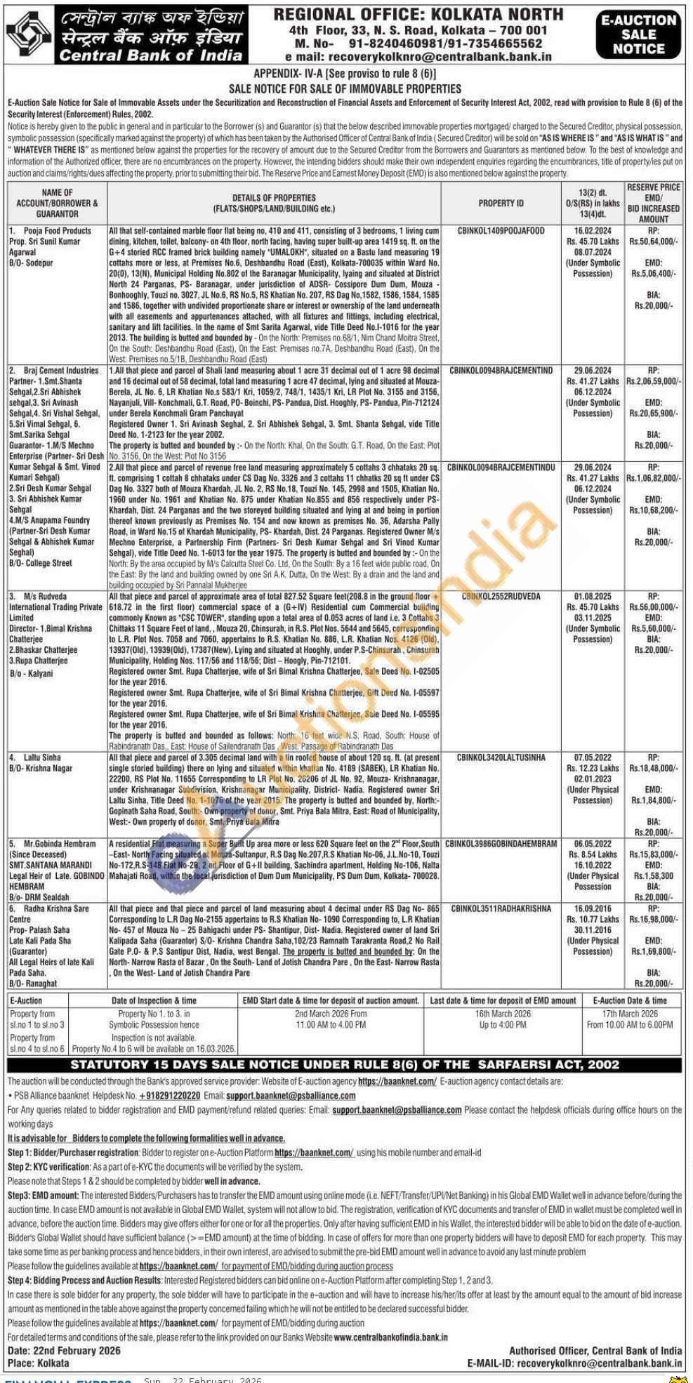 Contact no : 8240460981/7354665562 e mail: recoverykolknro@centralbank.bank.in