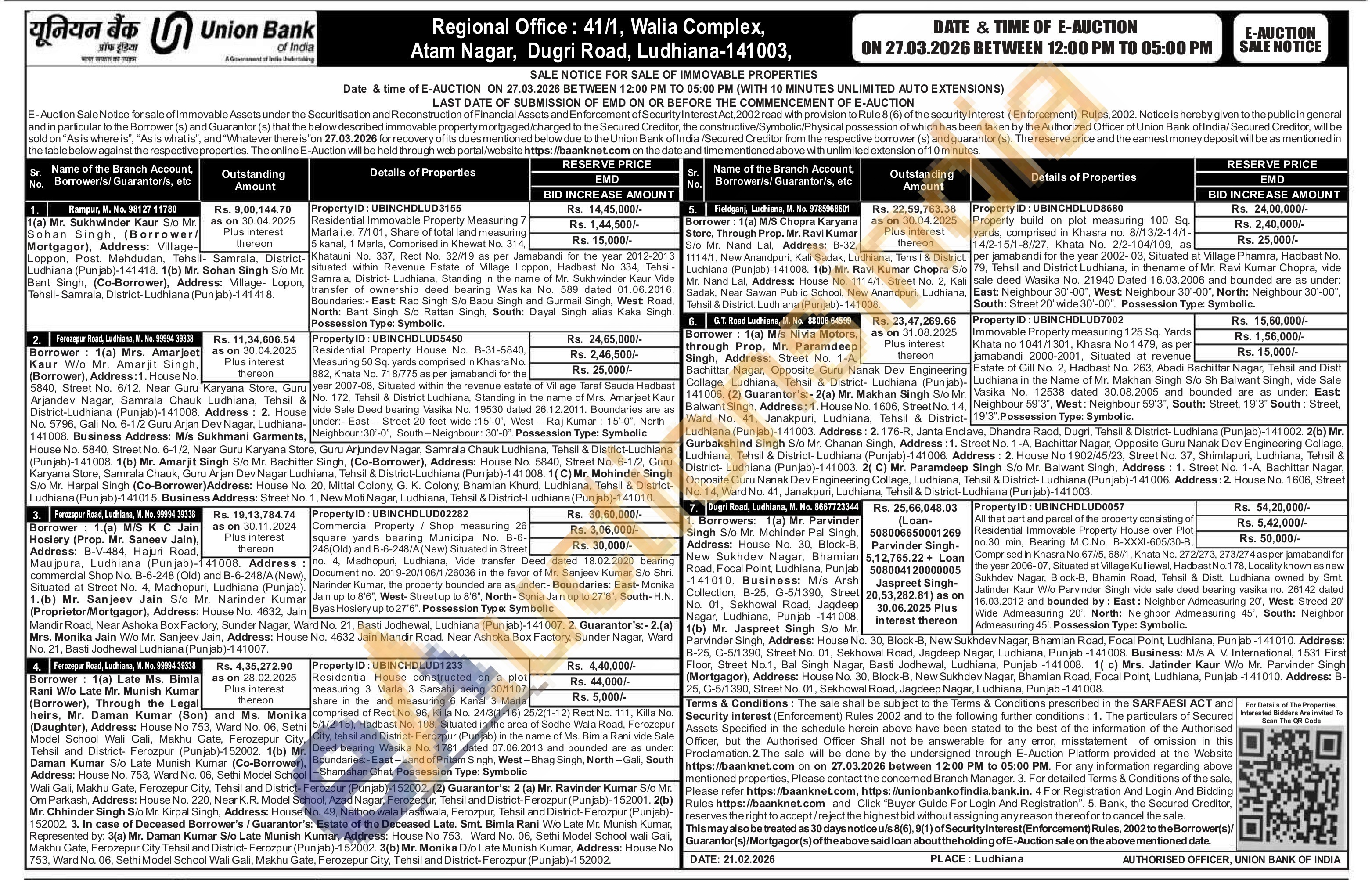 Immovable Property measuring 125 Sq. Yards Khata no 1041/1301, Khasra No 1479, as per jamabandi 2000-2001, Situated at revenue Estate of Gill No. 2, Hadbast No. 263, Abadi Bachittar Nagar, Tehsil and Distt Ludhiana