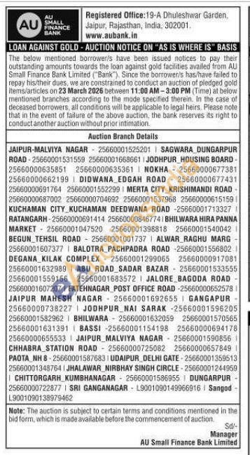 AU Small Finance Bank Gold Auctions Auction in Jaipur
