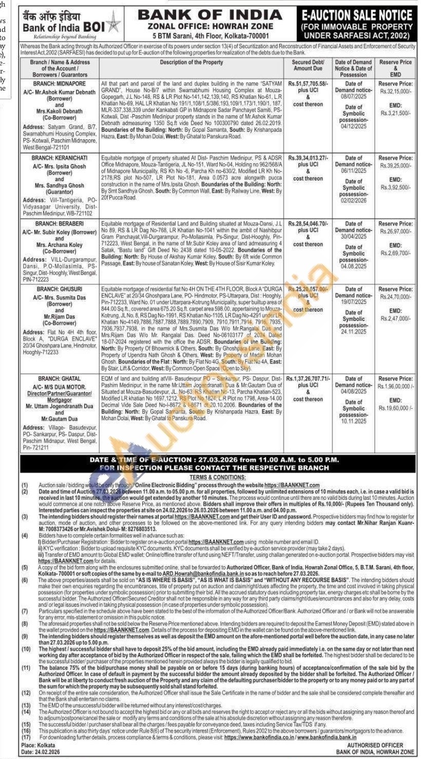 All that part and parcel of the land and duplex building in the name "SATYAM GRAND, House No-B/7 within Swamabhumi Housing Complex at Mouza-Gopegarh, J.L No-148, RS & LR Plot No-141,142,139,140, RS Khatian No-61, LR Khatian No-69, HAL LR Khatian No 191/1,108/1,5/386,193,109/1,173/1,190/1, 187, MLR-337,338,339 under Kankabati GP in Midnapore Sadar Panchayet Samiti, PS-Kotwali, Dist-Paschim Medinipur property stands in the name of Mr.Ashok Kumar Debnath admeasuring 1350 Sq.ft vide Deed No 100300790 dated 26.02.2019. Boundaries of the Building: North: By Gopal Samanta, South: By Krishanpada Hazra, East: By Mohan Dolai, West: By Ghatal to Panskura Road.