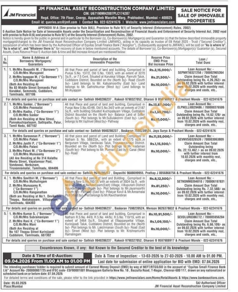 2) All that Piece and parcel of land and building. Comprised in Punjai New S.No.42/4B, Old S.No.34/2 with an extents of 2187 Sq.ft., with building Situated Kuchipalayam Village, Cuddalore District Bounded on the (North by)- Balance Land of Seller (South by) Plot belongs to Mr.Subulakshmi (East by)- Land belongs to Mr. Vazhivel (West by)-Pathway