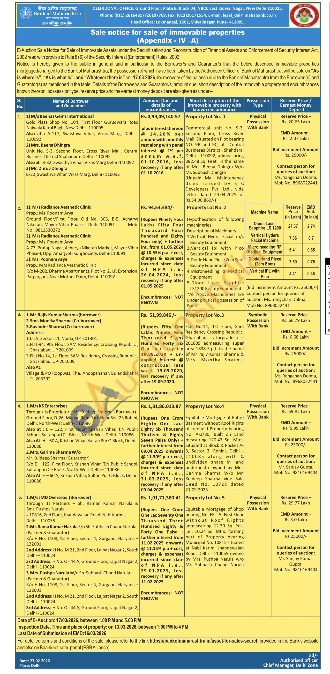 Hypothecation of following machineries Description of Machinery Diode Hand Piece 2cm Spot Beauty Equipment