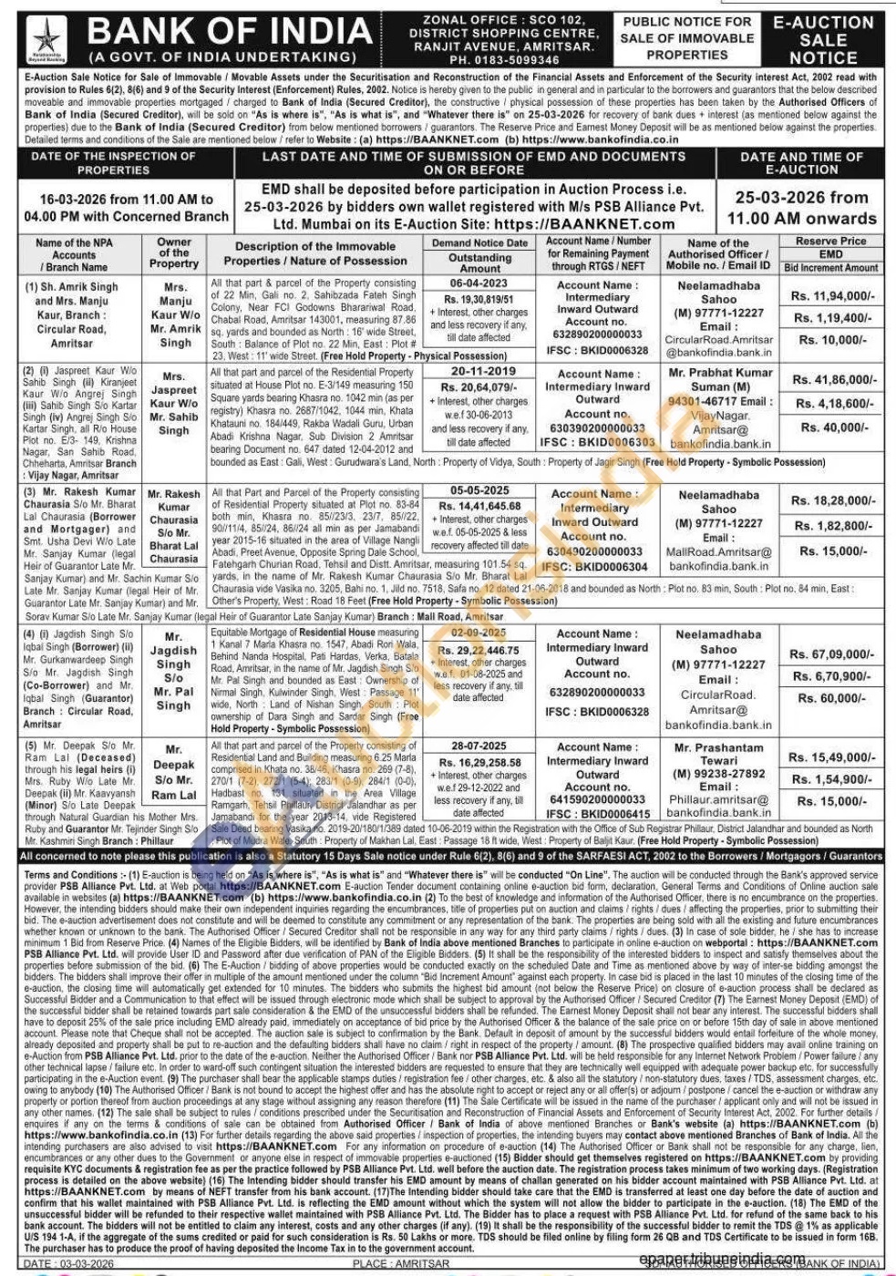 All that part & parcel of the Property consisting of 22 Min, Gali no. 2, Sahibzada Fatah Singh Colony, Near FCI Godowns Bharariwal Road, Chabal Road, Amritsar 143001, measuring 87.86 sq. yards and bounded as North: 16" wide Street, South Balance of Plot no. 22 Min, East: Plot # 23. West: 11" wide Street. (Free Hold Property - Physical Possession)