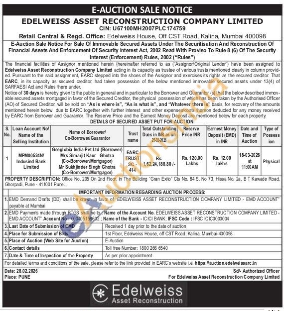 PROPERTY DESCRIPTION: Office No. 205 On 2nd Floor, In The Building "Gran Exito" Cts No. 84 S. No 73, Hissa No. 2a, BT Kawade Road, Ghorpadi, Pune 411001 Pune