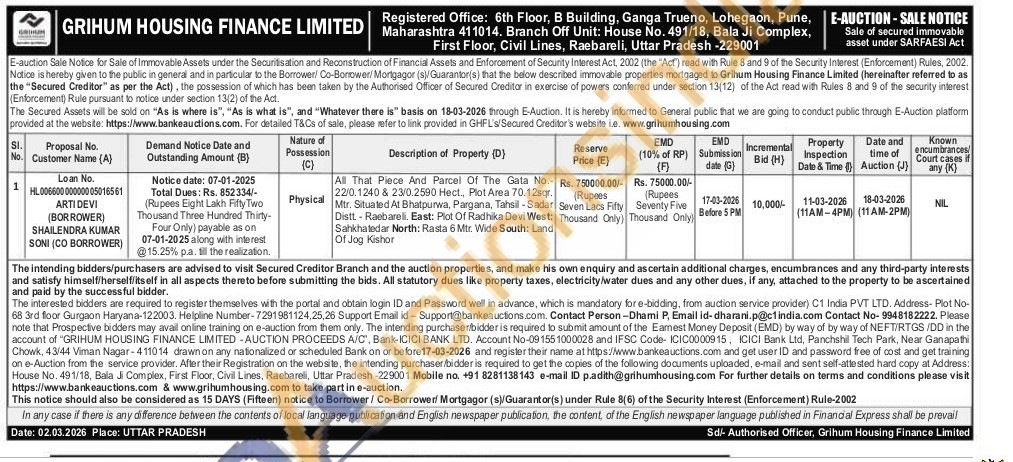 All That Piece And Parcel Of The Gata No.-22/0.1240 & 23/0.2590 Hect., Plot Area 70.12sgr. Mtr. Situated At Bhatpurwa, Pargana, Tahsil - Sadar Distt-Raebareli, East: Plot Of Radhika Devi West: Sahkhatedar North: Rasta 6 Mtr. Wide South: Land Of Jog Kishor