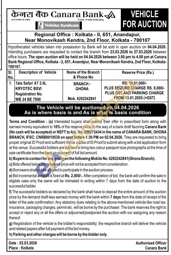 Tata Safari XT 2.0L KRYOTEC BSVI Registration No. WB 24 BE 7900