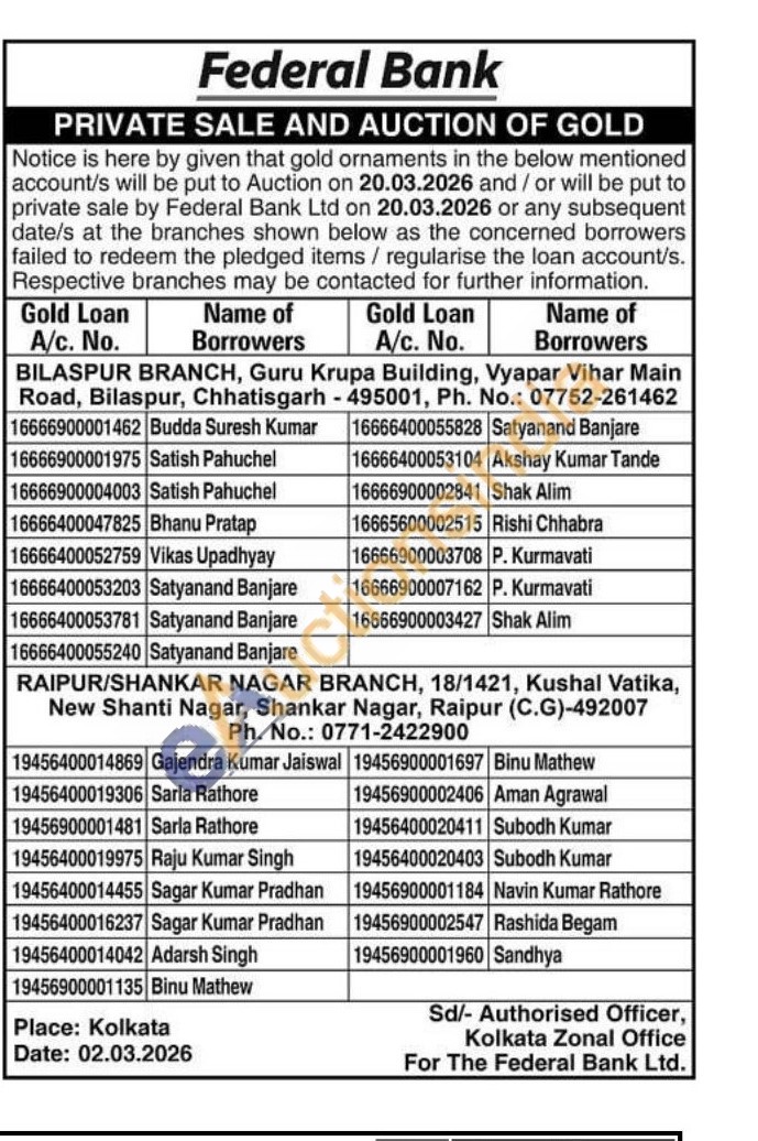 Federal Bank Gold Auctions Auction in Kolkata