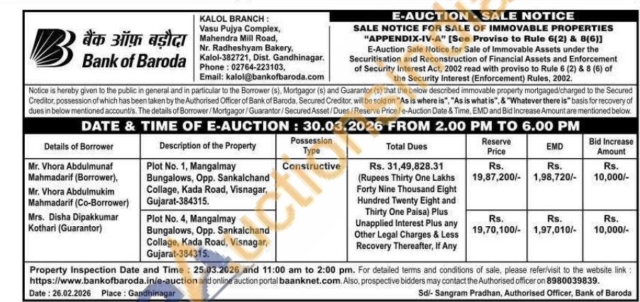 Contact no : 8980039839/02764223103, Email: kalol@bankofbaroda.com