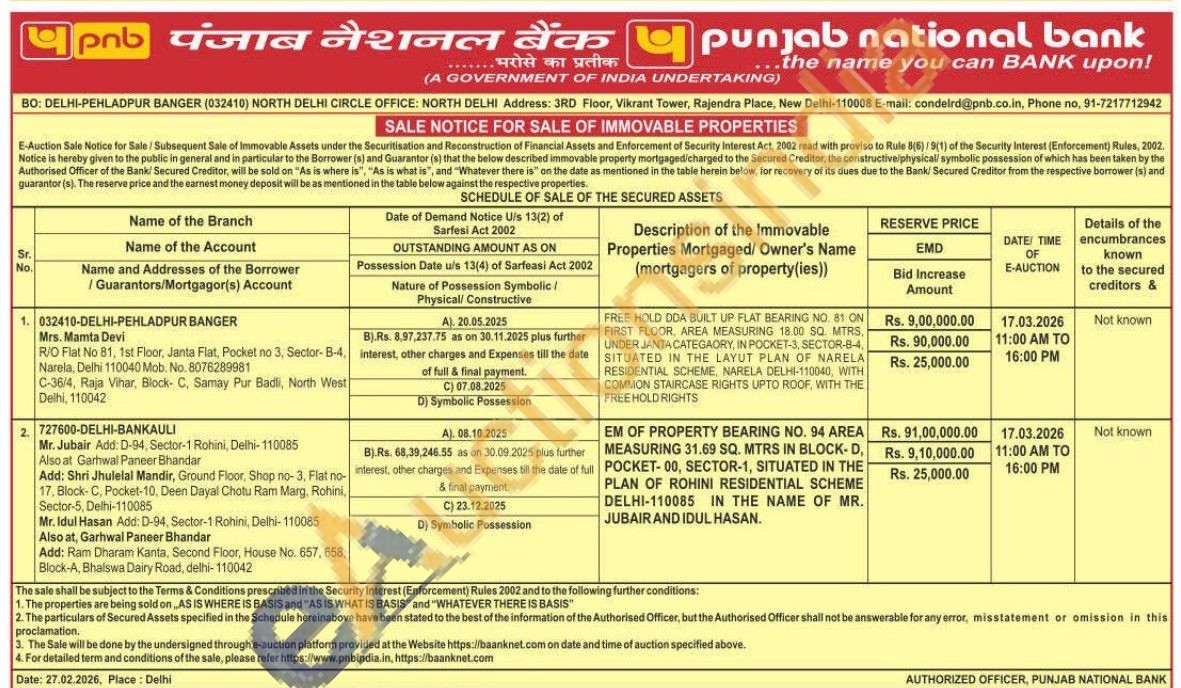 EM OF PROPERTY BEARING NO. 94 AREA MEASURING 31.69 SQ. MTRS IN BLOCK-D, POCKET-00, SECTOR-1, SITUATED IN THE PLAN OF ROHINI RESIDENTIAL SCHEME DELHI-110085 IN THE NAME OF MR. JUBAIR AND IDUL HASAN