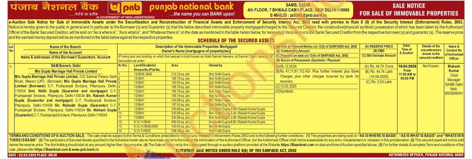 Contact Mukesh Kumar Chief Manager SAMB Delhi Mob: 9555936561
