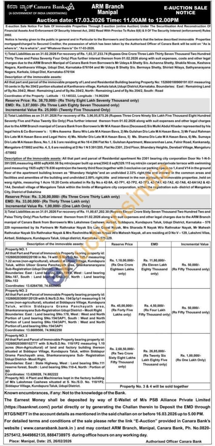 All that part and parcel of the immovable property of Land and Residential Building bearing Property No: 152600100900191 031 measuring 10 cents in Sy No 354/2 portion situated at Kanthavara village, Karkala taluk, Udupi District, Karnataka. Boundaries: East: Remaining Land of Sy.No.354/2, West: Remaining Land of Sy.No.354/2, North: Remaining Land of Sy. No.354/2, South: Road