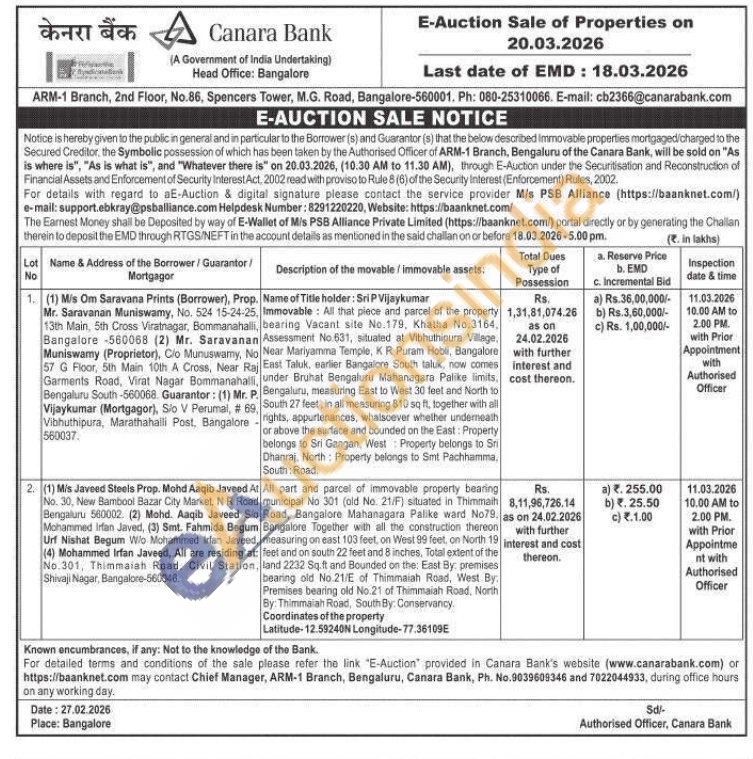 All part and parcel of immovable property bearing municipal No 301 (old No. 21/F) situated in Thimmaih Road, Bangalore Mahanagara Palike ward No79. Bangalore Together with all the construction thereon , measuring on east 103 feet, on West 99 feet, on North 19 feet and on south 22 feet and 8 inches, Total extent of the land 2232 Sq.ft and Bounded on the East By: premises bearing old No.21/E of Thimmaiah Road, West By: Premises bearing old No.21 of Thimmaiah Road, North By: Thimmaiah Road, South By: Conservancy