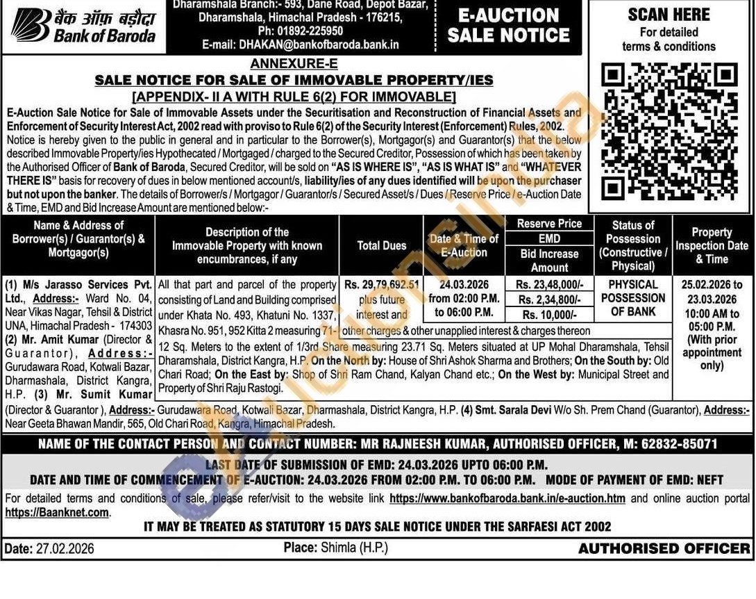 All that part and parcel of the property consisting of Land and Building comprised under Khata No. 412 Sq. Meters to the extent of 1/3rd Share measuring 23.71 Sq. Meters situated at UP Mohal Dharamshala, Tehsil Dharamshala, District Kangra, H.P.