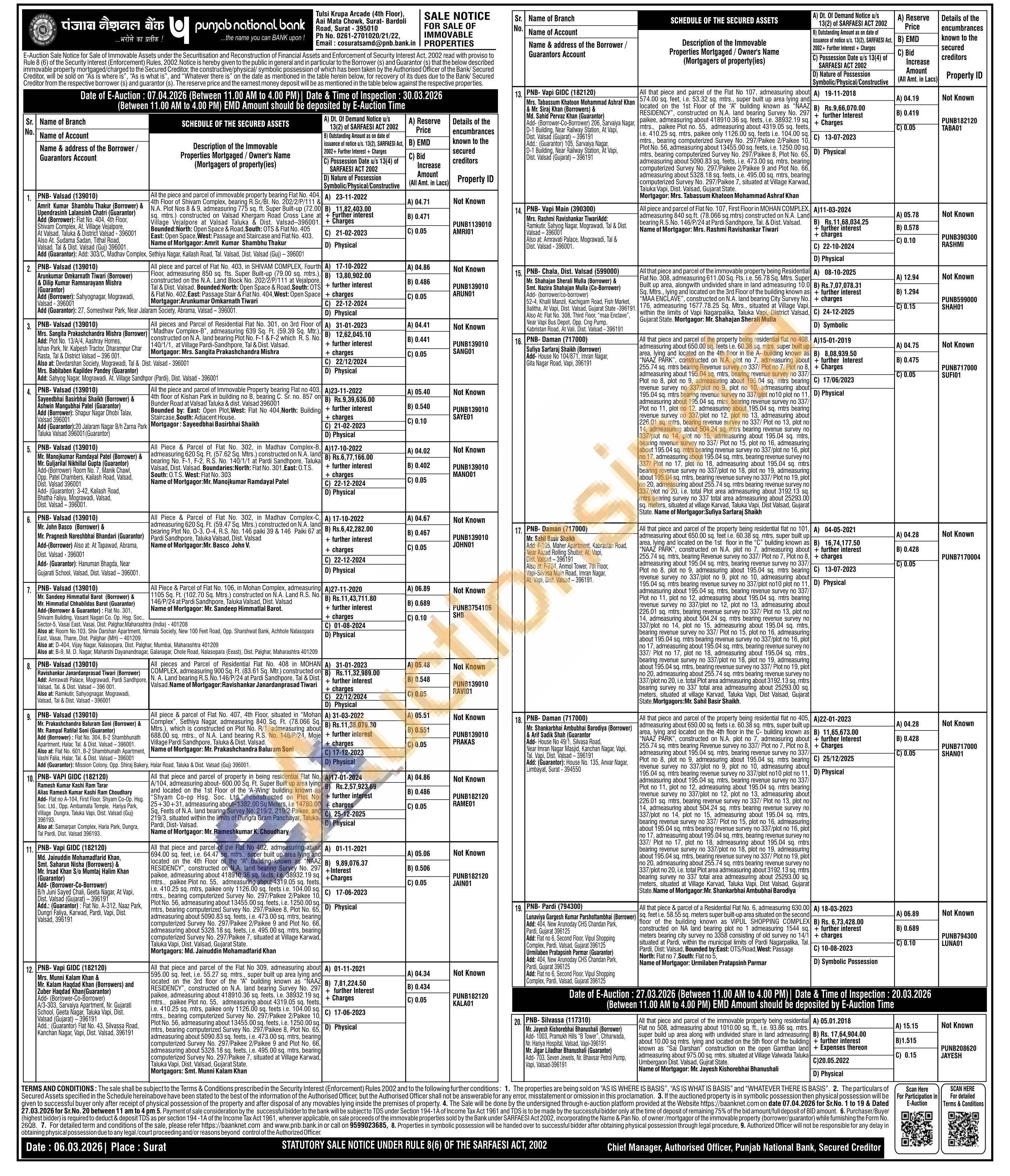 Contact Ph No. 0261-2701020/21/22, Email: cosuratsamd@pnb.bank.in