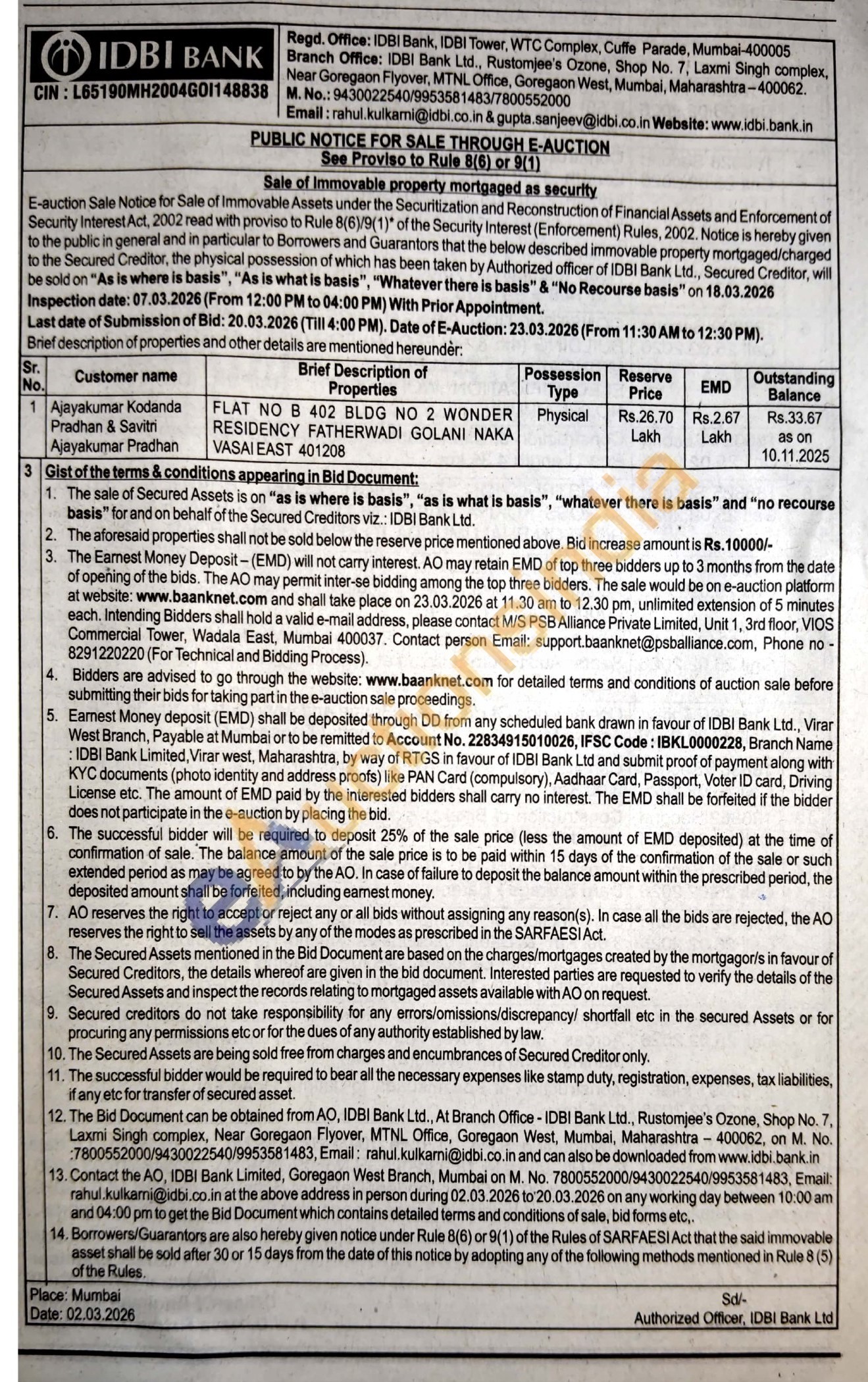 FLAT NO B 402 BLDG NO 2 WONDER RESIDENCY FATHERWADI GOLANI NAKA VASAI EAST 401208