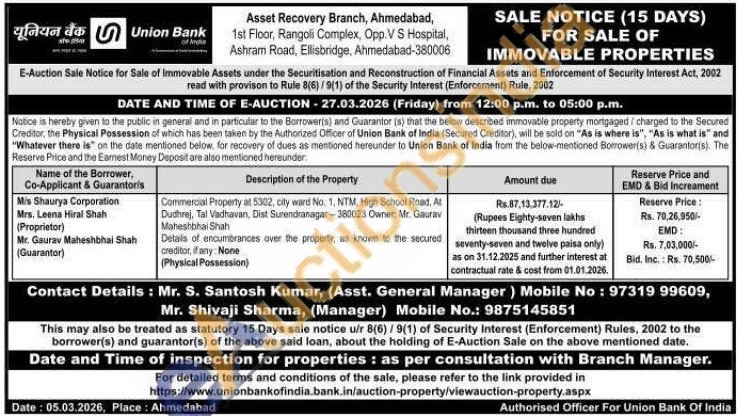 Commercial Property at 5302, city ward No. 1, NTM, High School Road, At Dudhrej, Tal Vadhavan, Dist Surendranagar-380023 Owner: Mr. Gaurav Maheshbhai Shah