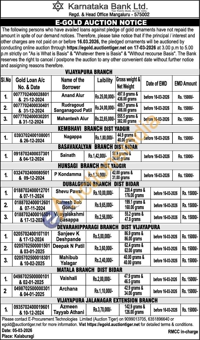 Karnataka Bank Gold Auctions Auction in Vijayapura