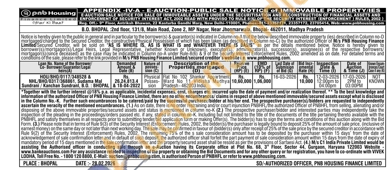 Flat No 102 Shankar Appartment Ward No 11 Vidisha Madhya Pradesh - 462003 India.