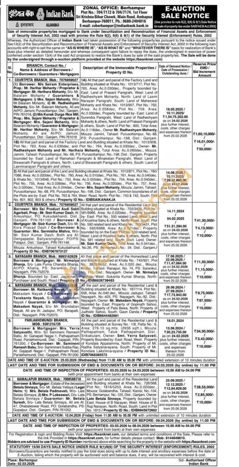 All that piece and parcel of the Homestead Land and Building situated at Khata No.: 742/921, Plot No.: 3822/6052, Area: Ac.0.020 dec., Mouza: Khatia, Tahasil: Ranapur, No. 74, PS: Sarankul, No. 111, Dist.: Nayagarh, Owner- Mr. Nirmalya Bhanja. Bounded by- East: Jagannath Pradhan, West: Sukanta Kumar Bhanja, North: Purchaser and South: Road/Property ID No.: IDIB6826739483