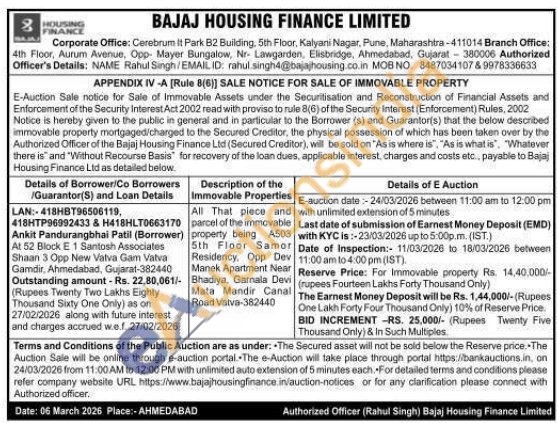 All That piece and parcel of the immovable property being A503 5th Floor Samor Residency, Opp Dev Manek Apartment Near Bhadiya, Garnala Devi Mata Mandir Canal Road Vatva-382440