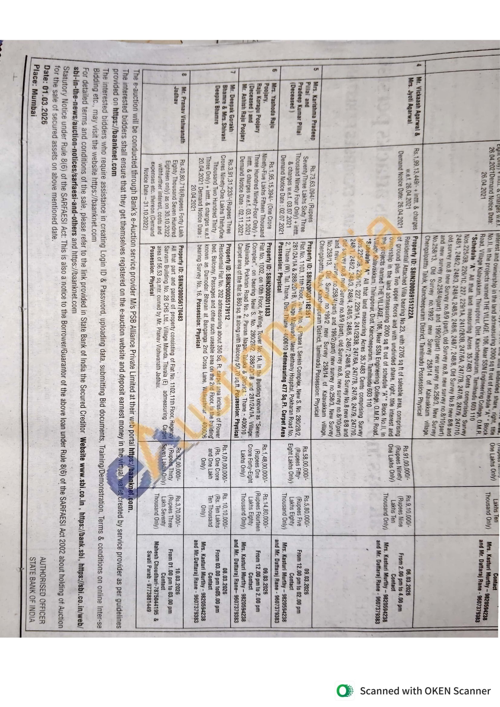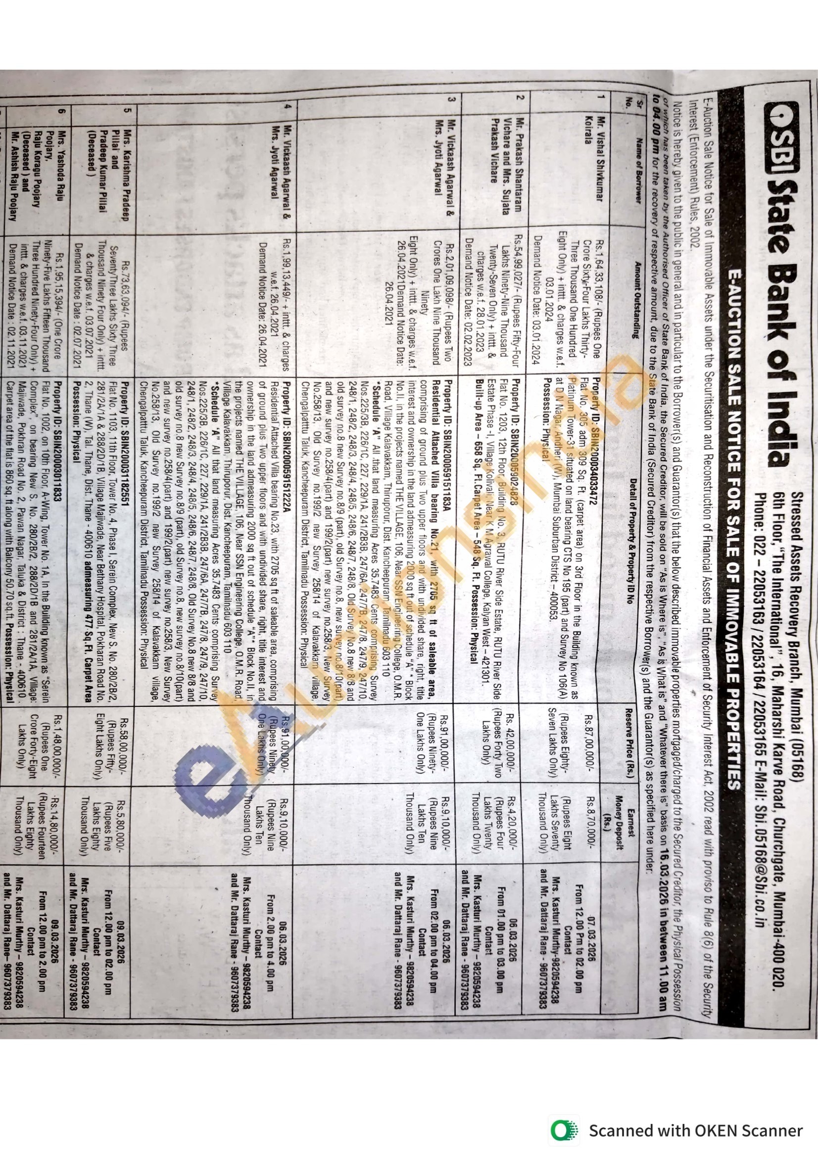 5) Flat No. 1103, 11th Floor, Tower No. 4, Phase I, Serein Complex, New S. No. 280/28/2, 1.281/2A/1A & 288/20/1B, Village Majiwade, Near Bethany Hospital, Pokharan Road No. 2. Thane (W), Tal. Thane, Dist. Thane-400610 admeasuring 477 Sq. Ft. Carpet Area Possession: Physical