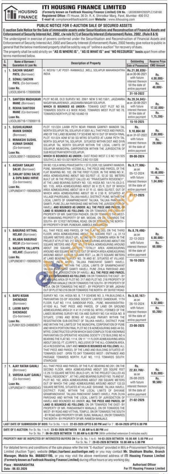 SURVEY NO. 134, HISSA NO, B, TP SCHEME NO. 3, FIN, BUILDING A PARIVARTAN CO-OP HOUSING SOCIETY LIMITED DANDEKAR, 11TH FLOOR, FLAT NO, 1114, DANDEKAR POOL, PUNE, MAHARASHTRA-411030 ALL THAT PIECE AND PARCEL OF LAND OR GROUND ADMEASURING AREA 01 H 41 R (14100 SQ. MTRS.) FORMED OF THE LANDS BEARING SURVEY NO.134 AND SURVEY NO.134 HISSA NO. B SITUATE, LYING AND BEING AT VILLAGE PARVATI WITHIN THE REGISTRATION SUB-DISTRICT OF TALUKA HAVELI, DISTRICT PUNE AND WITHIN THE LIMITS OF THE MUNICIPAL CORPORATION OF PUNE AND WHICH PORTION FINAL PLOT NO 28 ADMEASURING 9460.44 50. MTRS. CONSTRUCTED UPON WHICH SAID COMPLEX TO BE KNOWNAS PARIVARTAN CO-OPERATIVE HOUSING SOCIETY LTD BUILDING NG A BEARING THE FLAT NO. 1114, ON 11 11 FLOOR ADMEASURING AREA ABOUT 269 SQ. FT. (C(IRPET), INCLUSIVE OF THE ALL-COMMON AREA, AS A RESIDENTIAL UNIT AND WHICH IS BOUNDED AS FOLLOWS: ALL THAT PIECE AND PARCEL OF THE LAND AND BUILDING SITUATED AT: TOWARDS EAST OPEN TO SKY TOWARDS WEST: ENTRANCE AND PASSAGE TOWARDS NORTH: FLAT NO. 1113 TOWARDS SOUTH: STAIRCASE