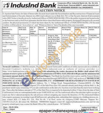 Peoperty: Flat No. B-173/301 First Floor, Flot No. 173, Marts Gold Greem Acres Ashadeep, Necinrona Alwar, Pin 301705, admeasuring APR 1191.97 S Feet (Super Built up arve)& #58.145g. Feet (Built up Arca)