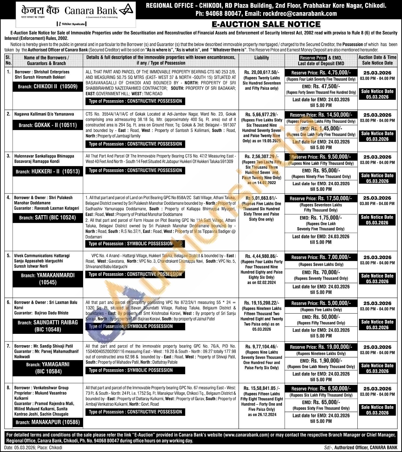All that part and parcel of Land on Plot Bearing GPC No 858A/2C Satti Village, Athani Taluka, Belagavi District owned by Sri Pulakesh Manohar Doddamane bounded by - North: Property of Sadhashiv Yamunappa Doddamane, South Property of Kallappa Bhimappa Myageri, East: Road, West: Property of Prahlad Manohar Doddamane 2. All that part and parcel of Farm House on Plot Bearing GPC No 11A Satti Village, Athani Taluka, Belagavi District owned by Sri Pulakesh Manohar Doddamane bounded by North: Road, South: R.S No.37/1, East: Road, West: Property of Vias Tippanna Badiger @ Dodamani