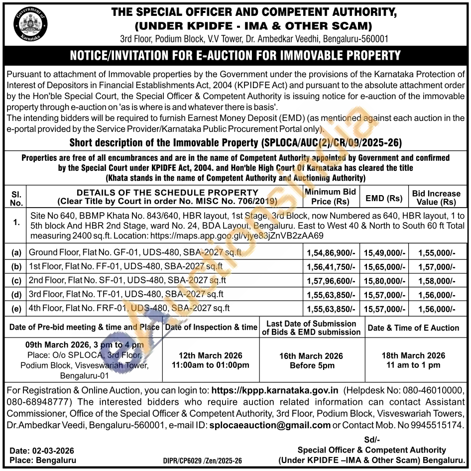 Site No 640, BBMP Khata No. 843/640, HBR layout, 1st Stage, 3rd Block, now Numbered as 640, HBR layout, 1 to 5th block And HBR 2nd Stage, ward No. 24, BDA Layout, Bengaluru. East to West 40 & North to South 60 ft Total measuring 2400 sq.ft. Location: https://maps.app.goo.gl/vjye83jZnVB2zAA69