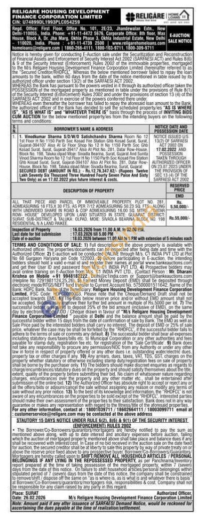 ALL THAT PIECE AND PARCEL OF IMMOVEABLE PROPERTY PLC ADMEASURING 18 FTSX 36 FTS, AS PER 7/12 ADMEASURING 50.23 50. FTS ALONG WITH UNDIVIDED SHARE IN ROAD & COP ADMEASURING 16.00 50 MITRS "DATAR ROM HOUSE DEVELOPED UPON LAND SITUATED IN STATE GUARAT DISTRICT SURAT SUB-DISTRICT & TALUKA OLPAD MOJE SMADLA BEARINA BLOCK NO. 198 RESIDENTIAL NA LAND PAIKEE