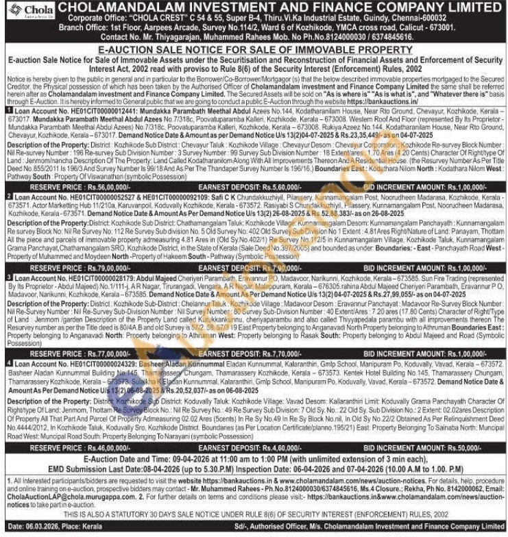 Description of the Property: District Kozhikode Sub-District: Chelannur Taluk: Kozhikode Village Madavoor Desom. Eravannur Panchayat: Madavoor Re-Survey Block Number Nil Re-Survey Number: Nil Re-Survey Sub-Division Number Nil Survey Number: 80 Survey Sub-Division Number: 40 Extent/Ares 7.20 ares (17.80 Cents) Character of Right/Type of Land Jenmom/garden Description of the Property Land called Kurukkankunnu, chenyaparambu and also called Thiyyapedala parambu with all improvements thereon The Resurvey number as per the Title deed is 80/4A B and old Survey is 57/2.58.57/3 19 East Property belonging to Anganavadi North Property belonging to Athruman Boundaries East: Property belonging to Anganavadi North. Property belonging to Athruman West: Property belonging to Rasak South: Property belonging to Abdul Majeed and Road (Symbolic Possession)