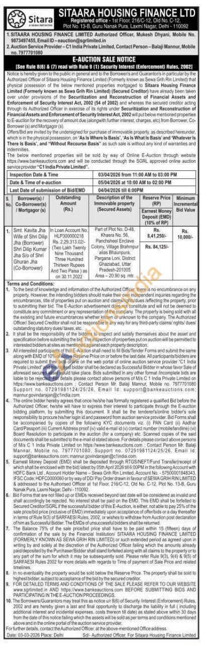 Part of Plot No. D-48, Khasra No. 56, Panchsheel Enclave Colony, Village Brahmpur alias Bhaunpura, Pargana Loni, District Ghaziabad, Uttar Pradesh-201005 Area-20.50 sq mir.
