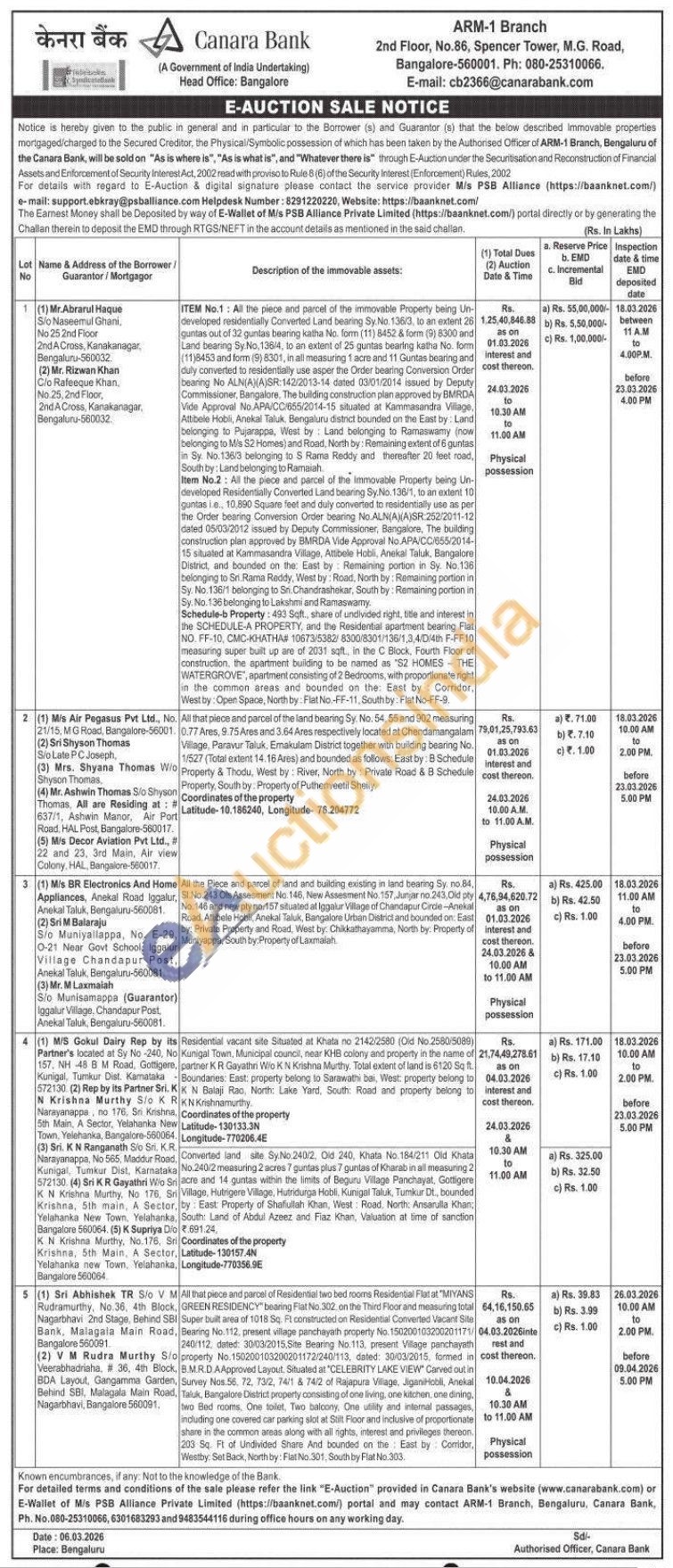 contact ARM-1 Branch Ph. No. 080-25310066, 6301683293 and 9483544116