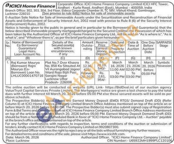 Plot No.7 Over Khasra No. 858 Ka Sitauted At Vil Aurangabad Jageer Ward Raja Bijili Pasi Sarojini Nagar Lucknow Uttar Pradesh-226008