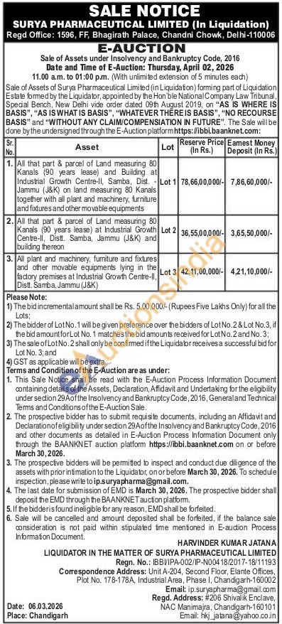 All that part & parcel of Land measuring 80 Kanals (90 years lease) at Industrial Growth Centre-II, Distt. Samba, Jammu (J&K) and building thereon
