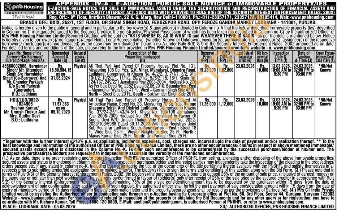 All That Part And Parcel Of Property House Situated At Ambedkar Nagar, Street No. 23, 70 Sq. Yds, Village Giaspura Tehsil And District Ludhiana, Comprised In Khasra No. 37//24-25/1-43//4-5/1, Khata No. 103/106 Jamabandi Year 2008-2009 Hadbast No. 261, Registered In Favour Of Sudha Devi W/O Umesh Thakur Vide Document No. 2022-2023/103/5988 Dated 30.11.2022 With Sub Registrar/ Joint Sub Registrar Ludhiana South. Boundaries East: Street 18 Ft. Wide Side 25 Ft. West: Neighbour Side 25 Ft. Ft., North: Manas Kumar Side 25 Ft. South: Om Parkash Side 25 Ft