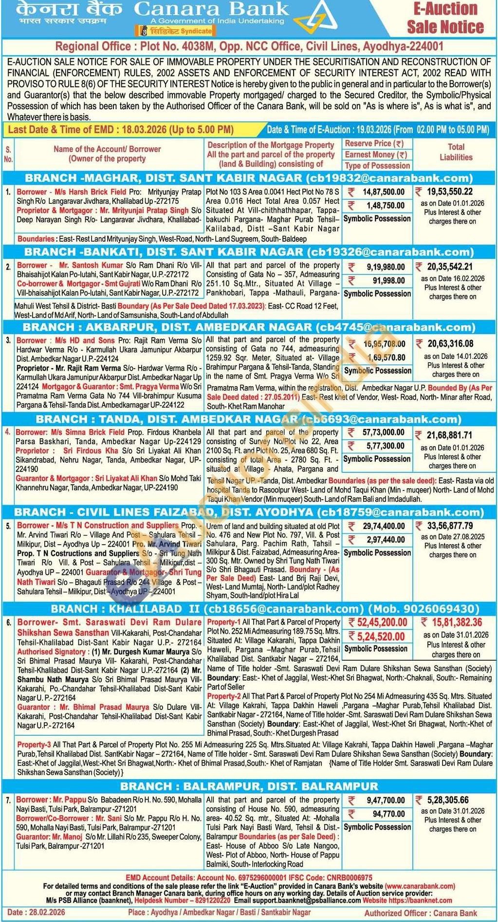Property-1 All That Part & Parcel of Property Plot No. 252 Mi Admeasuring 189.75 Sq. Mtrs. Situated At: Village Kakarahi, Tappa Dakhin Haweli, Pargana Maghar Purab, Tehsil Khalilabad Dist. Santkabir Nagar - 272164, Name of Title holder -Smt. Saraswati Devi Ram Dulare Shikshan Sewa Sansthan (Society) Boundary: East:- Khet of Jaggilal, West:-Khet Sri Bhagwat, North:-Chaknali, South:- Remaining Part of Seller