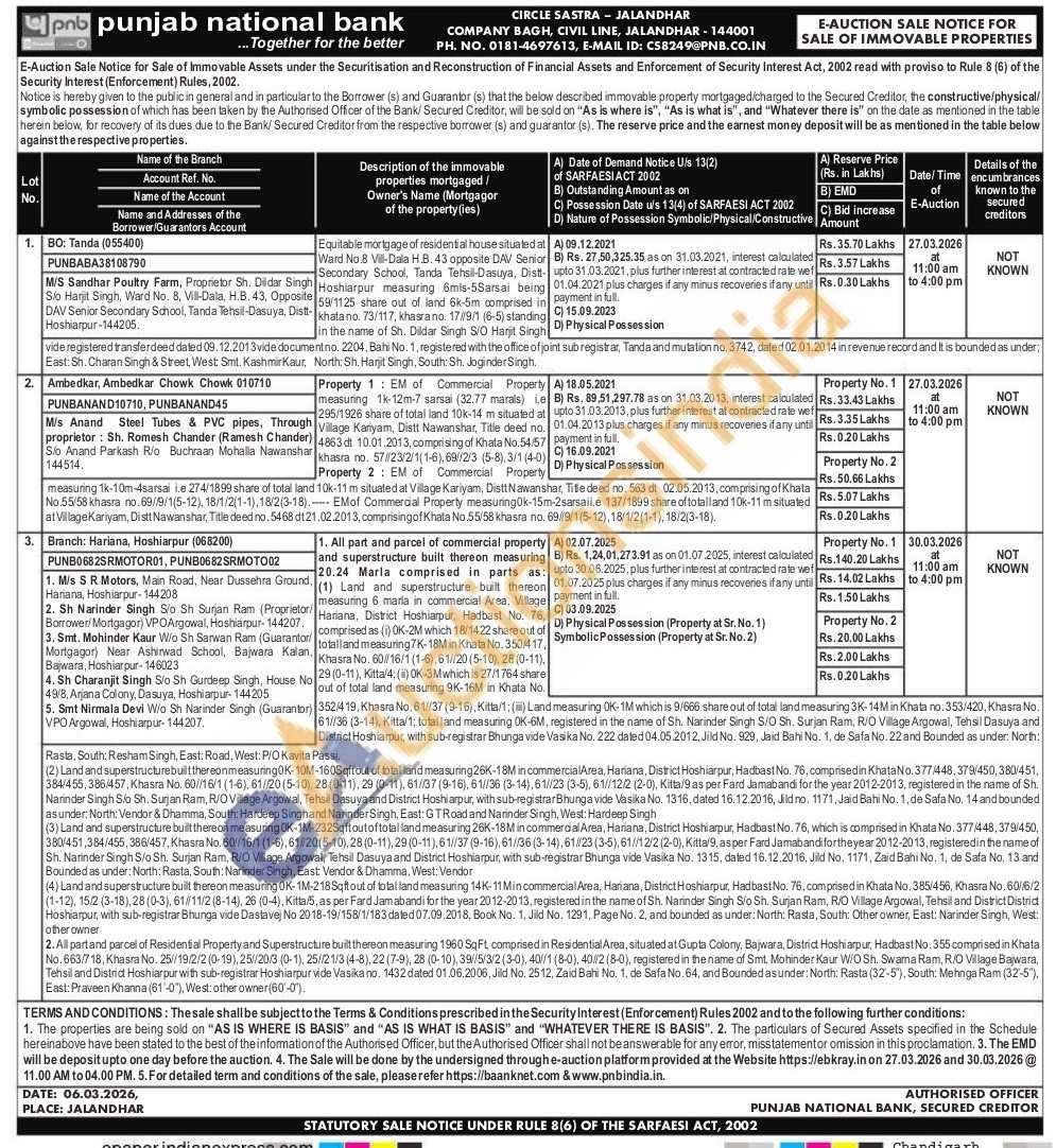 2. All partand parcel of Residential Property and Superstructure built thereon measuring 1960 SqFt, comprised in Residential Area, situated at Gupta Colony, Bajwara, District Hoshiarpur, Hadbast No. 355 comprised in Khata No.663/718, Khasra No. 25/19/2/2 (0-19), 25/20/3 (0-1), 25//21/3 (4-8), 22(7-9), 28 (0-10), 39/5/3/2 (3-0), 40//1 (8-0), 40//2(8-0), registered in the name of Smt. Mohinder Kaur W/O Sh. Swama Ram, R/O Village Bajwara, Tehsil and District Hoshiarpur with sub-registrar Hoshiarpur vide Vasika no. 1432 dated 01.06.2006, Jild No. 2512, Zaid Bahi No. 1, de Sala No. 64, and Bounded as under: North: Rasta (32-5), South: Mehnga Ram (32-5"), East: Praveen Khanna (61-0"), West: other owner(60-0).