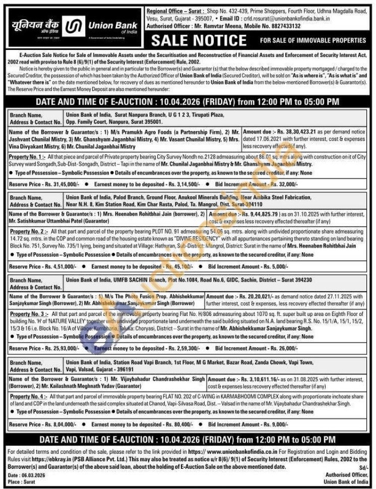 Property No. 2 All that part and parcel of the property bearing PLOT NO. 91 admeasuring 54.06 sq. mtrs. along with undivided proportionate share admeasuring 14.72 sq. mtrs. in the COP and common road of the housing estate known as "DIVINE RESIDENCY" with all appurtenances pertaining thereto standing on land bearing Block No. 751, Survey No. 735/1 lying, being and situated at Village: Hathuran, Sub-District: Mangrol, District: Surat in the name of Mrs. Heenaben Rohitbhai Jain