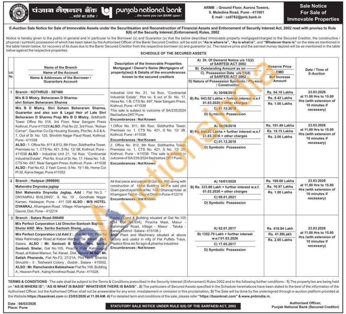 2. Office No. 812, 8th floor, Siddhartha Tower, Premises no. 1, CTS No. 421, S No. 12/38. Kothrud, Pune 411038. This sale is subject to outcome of SA/235/2024 filed before DRT Pune