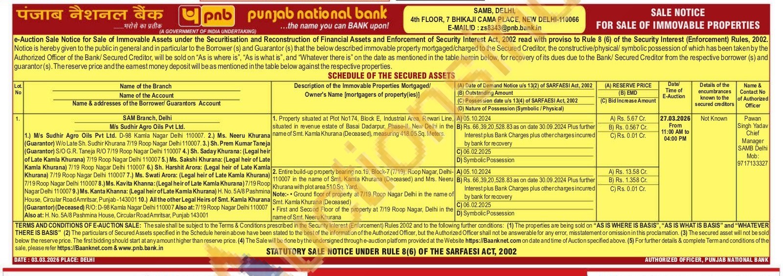 Pawan Singh Yadav Chief Manager SAMB Delhi Mob: 9717133327