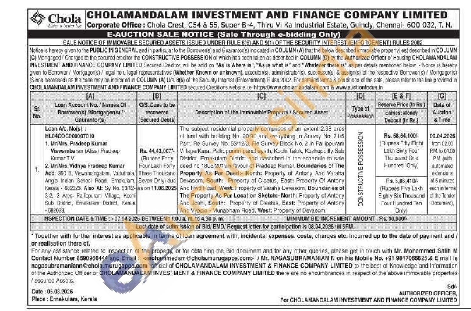 The subject residential property comprises of an extent 2.38 ares of land with building No. 20/90 and everything in Survey No. 71/5 Part. Re Survey No. 53/12/3, Re Survey Block No. 2 in Pallippuram Village/Kara, Pallippuram panchayath, Kochi Taluk, Kuzhuppilly Sub District, Ernakulam District and described in the schedule to sale deed no 1808/2019in favour of Pradeep Kumar. Boundaries of The Property As Per Deed: North: Property of Antony And Varaha Devasom, South: Property of Cleetus, East: Property Of Antony And Pwd Road, West: Property of Varaha Devasom, Boundaries of The Property As Per Location Sketch:- North: Property of Antony And Joshi, South: Property of Cleetus, East: Property of Antony And Vyppin-Munabham Road, West: Property of Devasom