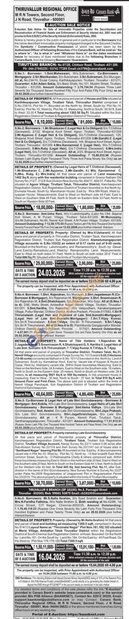 Contact TIRUVALLUR II BRANCH Mob: 99661 93879