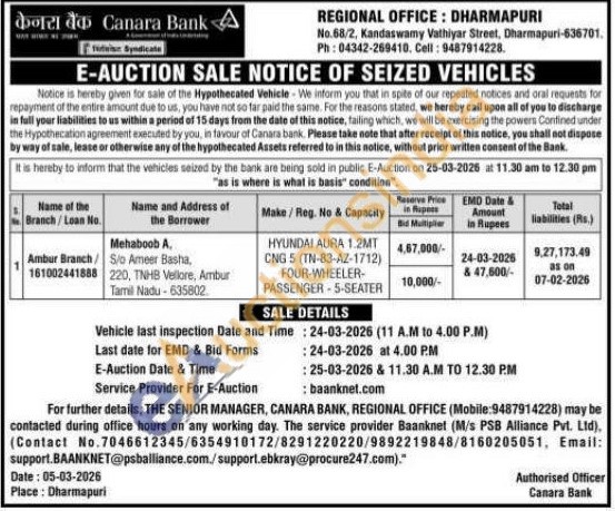 Make/Reg. No & Capacity : HYUNDAI AURA 1.2MT CNG 5 (TN-83-AZ-1712) FOUR-WHEELER-PASSENGER 5-SEATER