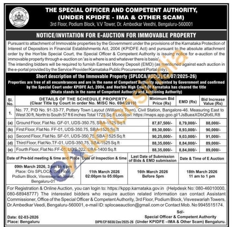No. 77, PID No. 91-33-77, Pottery Town Layout (William's Town), Civil Station, Bangalore-46. Measuring East to West 30 ft, North to South 57 ft 6 inches Total 1725 Sq.ft Location: https://maps.app.goo.gl/1JsBueaXDbQfo6LR8