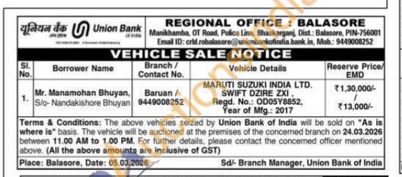 MARUTI SUZUKI INDIA LTD. SWIFT DZIRE ZXI, Regd. No.: OD05Y8852, Year of Mfg.: 2017