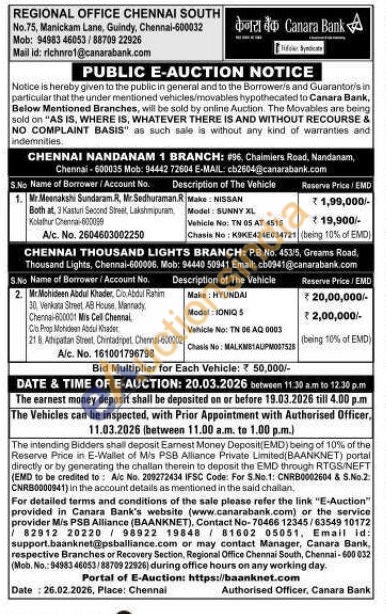 Make: HYUNDAI ,Model: IONIQ 5,Vehicle No: TN DE AQ 0003,Chasis No: MALKNS1ALPM007518.