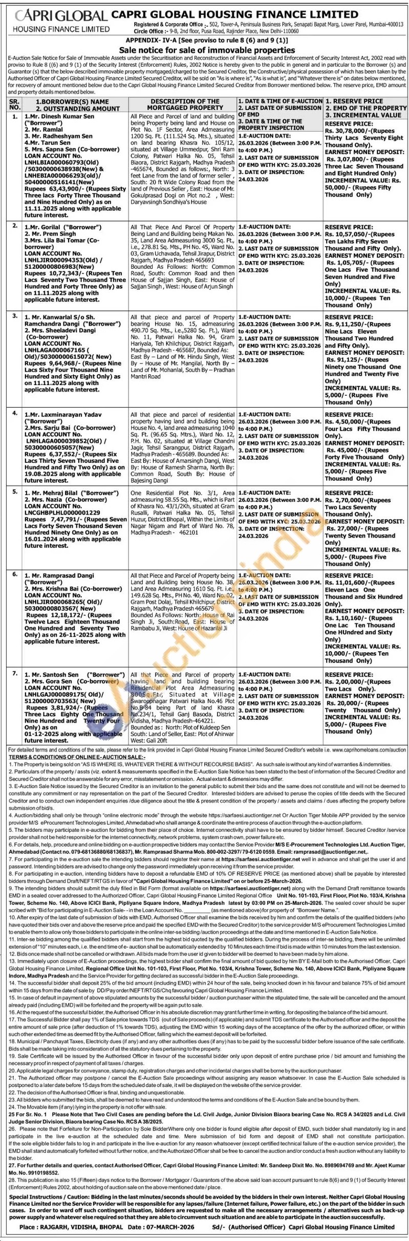 contact Authorised Officer, Capri Global Housing Finance Limited: Mr. Sandeep Dixit Mo. No. 8989694769 and Mr. Ajeet Kumar Mo. No. 9910198552.