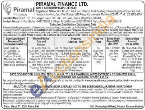 Contact Person: Punit Botira-9413746022 / Vikram Singh Rathore-80057857603 / Varun Kumar-8445422518